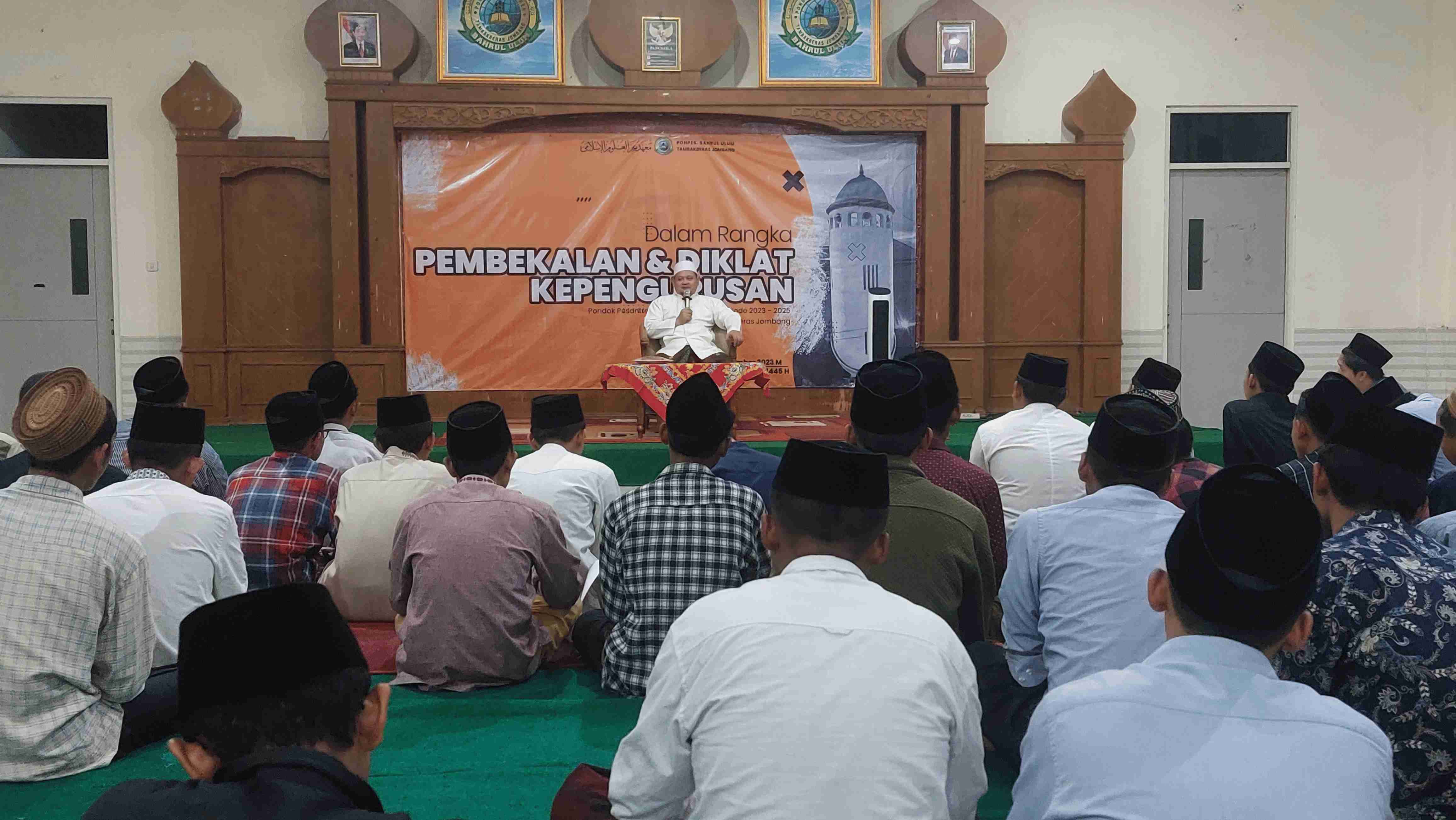 Jombang-Para pengurus masa abdi 2023-2025 Ponpes Bahrul Ulum Putra Induk ikuti acara Diklat Akhlak Pengurus. acara tersebut dihadiri oleh para pengurus baru, KH Abdurrozzaq Hadir pada acara ini bertindak sebagai pembicara. Bertempat di Aula Ma’had Aly pada Jum’at malam (10/11)